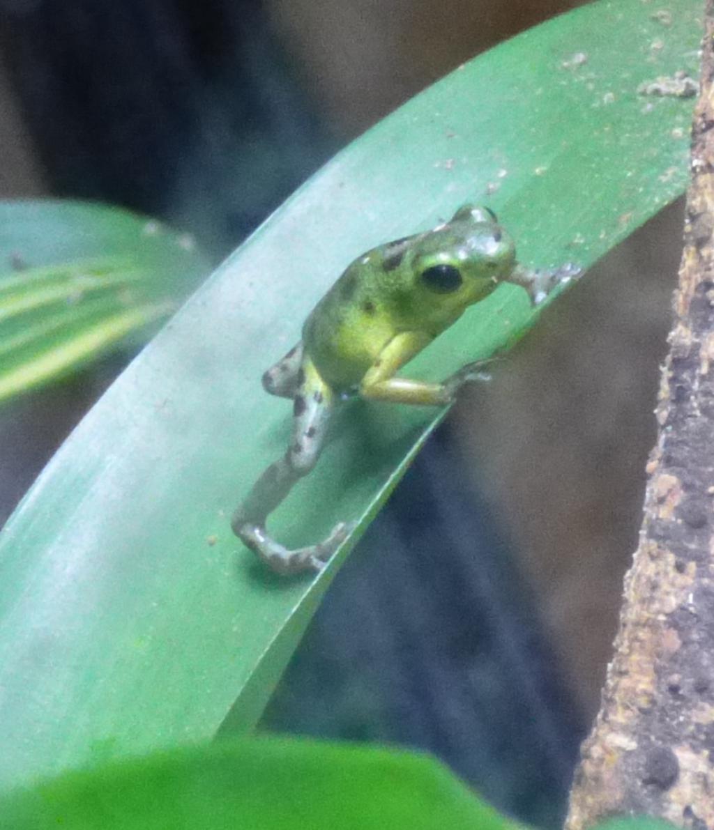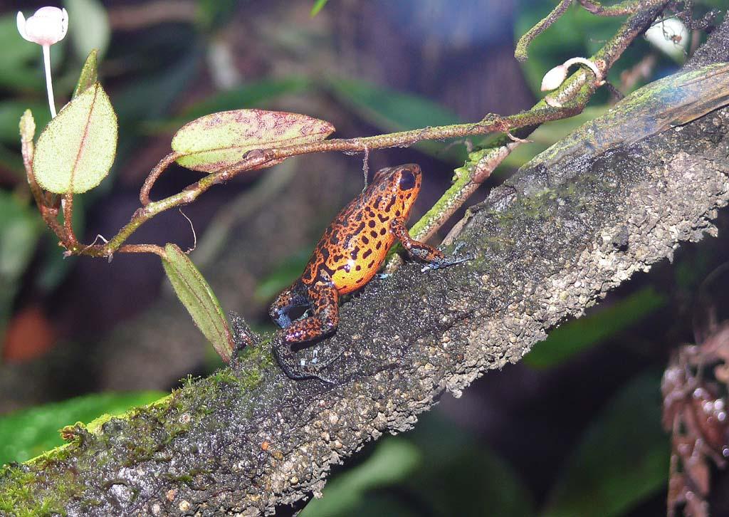 Flächen mit mehr Lichteinfall (Sekundärwald, Pflanzungen, Rodungsflächen oder Strassenränder) erlauben ein besseres Wachstum der Bodenvegetation und der Epiphytenflora auch an unteren Stammbereichen. Damit steigt die Anzahl potentieller Brutpflanzen und direkt proportional auch die Populationsdichte von O. pumilio. Der Autor konnte in Costa Rica eine Rodungsfläche besuchen und über zwei Jahre den Verlauf der Populationsstruktur beobachten. Die Abstände zwischen einzelnen Revieren von O. pumilio s.l. (O. cf. typographa) lagen im Primärwald bei über 10 m. Man fand die Tiere meist paarweise assoziiert. Auf der angrenzenden Rodungsfläche betrug der Abstand zwischen den Tieren oft weniger als 2 m und man konnte auf ein Männchen etwa drei Weibchen nachweisen. Durch die vermehrt am Boden vorhandenen Bromelien (an gerodeten Bäumen) wuchs die Population innerhalb eines Jahres stark an. Zusätzlich wanderten Tiere aus dem angrenzenden Wald zu. Auch entlang von Straßen finden sich vielerorts dichte Heliconienbestände die dann oft einer großen O. pumilio-Population als Biotop dienen.